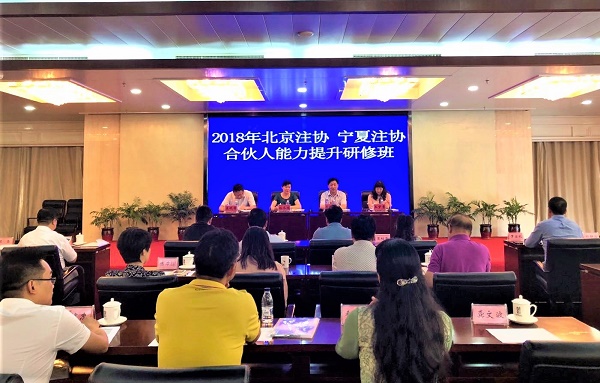 2018年7月2日至7月6日,北京注协委托北京国家会计学院,与宁夏注协联合举办北京、宁夏两地会计师事务所合伙人能力提升研修班。宁夏财政厅总会计师、宁夏注册会计师和资产评估师行业党委书记、会长杨冬梅,北京注协党委常务副书记、纪委书记、会长李玉国,北京注协党委专职副书记、纪委副书记、副秘书长孟晓萌出席开班仪式。仪式由宁夏注协副秘书长王梦慧主持。来自北京、宁夏两地会计事务所的50余名主任会计师及合伙人参加了培训。